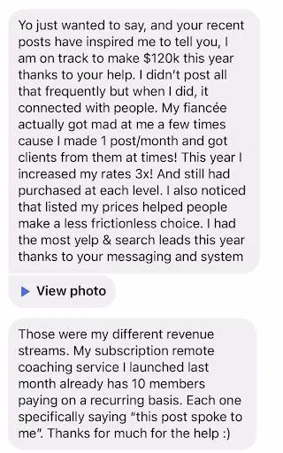 Not only did I unleash a powerful burning passion to master the nuances of messaging and copy, I tripled my impact on the general population. I helped hundreds of personal trainers get better at the science of training and sell their products and services.