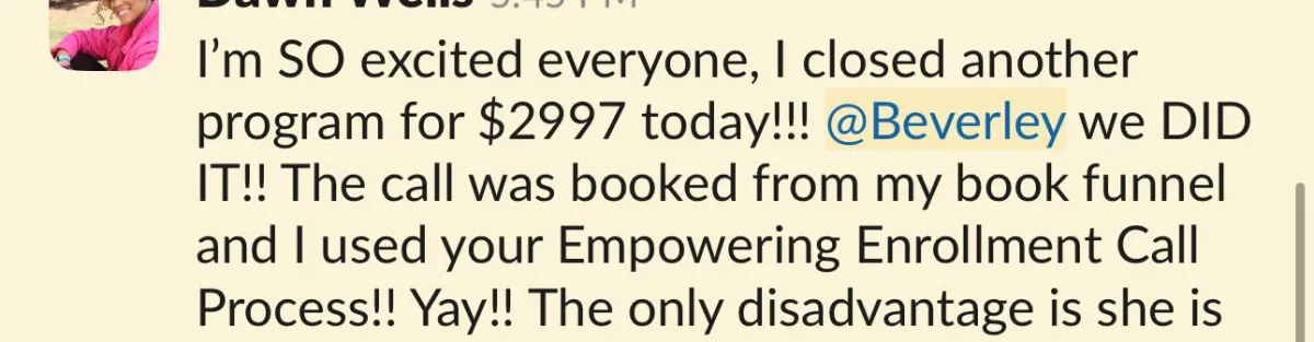 Your success is inevitable if you stay the course. Disappointment is also inevitable at times. The key is learning to move through it faster with support. If you’re already looking for ways out, this probably isn’t the right program for you.