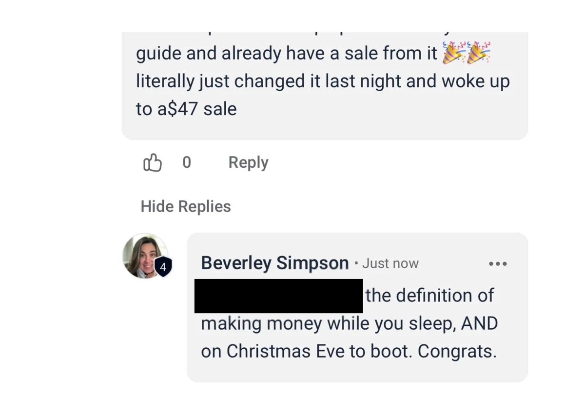 Daily access to expert coaches (including Beverley) to brainstorm, stay accountable, and keep momentum.